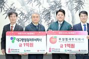 시민행정신문 강갑수 기자 | 대구농수산물도매시장 법인 대구중앙청과㈜(대표 이용우, 이상윤)와 효성청과㈜(대표 김형수)는 1월 5일 대구광역시청 동인청사 접견실에서 대구사회복지공동모금회를 통해 총 2억 원(각 1억 원)의 희망 나눔 성금을 전달했다. 이날 전달식에는 김정기 대구광역시장 권한대행, 대구중앙청과 김태형 전무이사, 효성청과 김형수 대표, 신홍식 대구사회복지공동모금회장 및 김상덕 대구농수산물유통관리공사 사장을 비롯한 주요 관계자들이 참석해 자리를 빛냈다. 특히 이번 기부는 지난해보다 3배 이상 증액된 성금으로 경기 침체에도 불구하고 지역사회를 위한 나눔의 깊이를 더했다는 점에서 큰 의미가 있다. 대구중앙청과는 매년 성금 기부와 농산물 나눔, 연탄 나눔 등 다각적인 사회공헌활동을 전개하며, 관련 기부 내역과 사회공헌활동 현황을 체계적으로 관리해 투명한 나눔 경영을 이어가고 있다. 효성청과는 일회성 기부에 그치지 않고 지속적인 사회공헌활동을 펼쳐 왔다. 지난 추석에는 지역 어르신들을 위해 과일을 후원했으며, 지역 농가에 6,000만 원 상당의 안마의자(20여 대) 기부, 김장김치
