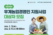 시민행정신문 강갑수 기자 | 대구광역시농업기술센터는 미래 농업 인력의 주축이 될 유능한 농업인을 육성하기 위해 ‘2026년도 후계농업경영인 선발’을 위한 신청을 받는다. 후계농업경영인 육성사업은 농업의 지속적인 발전을 이끌 유망한 예비 농업인과 농업경영인을 발굴해, 일정 기간 자금·교육·컨설팅 등을 종합적으로 지원함으로써 정예 농업 인력으로 육성하기 위한 제도다. 신청 대상은 만 18세 이상 만 50세 미만으로, 영농에 종사한 경력이 없거나 10년 미만인 농업인이다. 선발은 서류심사와 평가 절차를 거쳐 최종 확정된다. 선발자에게는 연리 1.5%, 5년 거치 20년 원금 균등분할 상환 조건으로 세대당 최대 5억 원의 정책자금이 융자 지원되며, 지원금은 농지 구입, 시설 설치, 농기계 구입 등 영농 기반 마련에 활용할 수 있다. 신청 기간은 1월 5일부터 2월 11일 오후 6시까지이며, 신청은 온라인으로만 가능하다. 신청을 희망하는 대상자는 차세대 농림사업정보시스템 ‘농업e지’를 통해 온라인으로 신청하면 된다. 신청 마감일에는 접속 지연 등으로 원활한 신청이 어려