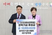 시민행정신문 기자 | 대구시교육청은 2월 23일, 한국전기공사협회 대구장학회에서 대구인재육성장학재단에 장학금 1천만 원을 기탁했다고 밝혔다. 한국전기공사협회 대구광역시회(회장 이병철)는 2011년 11월 대구장학회를 설립하여 경제적 사정이 어려운 전기관련학과 고등학생 및 대학생을 지원해오고 있으며, 지역 인재육성에 더욱 도움이 되고자 2025년에 이어 2년째 대구인재육성장학재단에 기탁하게 됐다. 이병철 회장은 “어려운 환경에서도 학생들이 재능을 키워나갈 수 있도록 지원하는데 보탬이 되길 바란다.”는 뜻을 전했고, 류석종 이사장은 “업계 발전을 위한 인재 육성 뿐 아니라, 더 나아가서 다양한 분야의 인재가 배출될 수 있도록 적극 지원하겠다.”고 했다. 강은희 교육감은 “기탁해주셔서 감사드리며, 기탁금은 어려운 학생들이 학업에 집중할 수 있도록 지원하는데 최선을 다하겠다.”며 고마움을 표시했다.