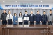 시민행정신문 강갑수 기자 | 인천광역시 계양구는 안전문화 정착 및 민관 협력 네트워크 강화를 위해 3일 구청 영상회의실에서 ‘안전문화운동 추진협의회’ 회의를 개최했다. ‘계양구 안전문화운동 추진협의회’는 지속가능한 안전문화 확산을 목표로 계양구 지역 공공기관장 및 민간단체장 등 19명으로 구성된 협의체로, 구민 안전의식 제고를 위한 캠페인 및 홍보, 안전교육 발굴 등 지역사회 안전문화 진흥의 중심 역할을 담당하고 있다. 이번 회의에서는 ▲2025년 안전문화운동 추진실적 및 2025년 시행계획 보고 ▲겨울철 자연재난(대설) 대응계획 공유 ▲안전문화 실천방안에 대한 의견수렴이 이뤄졌다. 참석 위원들은 실효성 있는 안전문화운동 실천 방안과 민관 협력 강화를 위한 다양한 의견을 제시하며 활발한 논의를 펼쳤다. 윤환 계양구청장은 “재난 유형이 갈수록 다양해지고 복잡해지는 만큼 모든 기관과 단체가 유기적으로 협력하는 것이 무엇보다 중요하다.”라며 “민관이 함께하는 안전문화운동 추진협의회를 통해 실질적인 협조체계를 구축하고, 구민이 체감할 수 있는 안전한 계양구를 만들어 나가겠다.”라고 말했다.