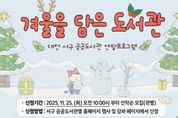 시민행정신문 강갑수 기자 | 대전 서구는 연말을 맞아 관내 5개 공공도서관(갈마·가수원·둔산·월평·어린이도서관)에서 12월 6일부터 12월 14일까지 지역 주민을 위한 '연말 특별프로그램'을 운영한다고 밝혔다. 이번 프로그램은 겨울 감성을 느낄 수 있는 체험형 강좌와 온라인 북 큐레이션으로 구성됐다. 체험 프로그램은 성인 대상 ‘나만의 반려식물, 토피어리 만들기’와 초등 1~4학년 대상 ‘진짜 같은 크리스마스 케이크 비누 만들기’ 등 두 강좌로 진행된다. 또한 각 도서관 홈페이지에서는 '첫눈을 기다리며 읽는 책들'을 주제로 한 온라인 북 큐레이션을 함께 운영해 계절에 맞는 도서 정보를 제공할 예정이다. 참가 신청은 11월 25일 오전 10시부터 각 도서관 홈페이지를 통해 선착순 접수로 진행된다. 세부 일정과 문의는 갈마 가수원, 둔산, 월평, 어린이도서관을 통해 안내받을 수 있다.