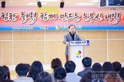 시민행정신문 강갑수 기자 | 대구 달서구는 새해를 맞아 1월 2일 구청 대강당에서 직원 270여 명이 참석한 가운데 2026년 시무식을 개최하고 본격적인 새해 업무에 돌입했다고 밝혔다. 이날 시무식은 기존의 형식적인 분위기에서 벗어나, 이태훈 구청장과 대구타악연구원이 함께하는 합동 타악 퍼포먼스로 문을 열며 역동적인 새 출발을 알렸다. 이태훈 구청장은 직접 북채를 잡고 전문 연주자들과 호흡을 맞추며 웅장한 북소리로 직원들의 결의를 하나로 모았다. 특히 행사 하이라이트로 진행된 LED 응원봉 퍼포먼스에서는 암전된 대강당 속에서 빛의 점들이 모여 숫자 ‘91.1’을 형상화해 눈길을 끌었다. 이는 달서구가 지난해 실시한 주민만족도 조사에서 기록한 역대 최고 점수로, 구민이 체감하는 행정 서비스의 신뢰와 성과를 상징적으로 표현한 장면이었다. 이어 대형 현수막 퍼포먼스를 통해 주민만족도 100% 달성을 향한 새해의 강한 의지를 함께 다졌다. 이태훈 달서구청장은 “북소리의 힘찬 울림처럼 공직자 한 사람 한 사람의 진심이 구민의 삶에 닿기를 바란다”며, “91.1%라는 성과에 안주하지