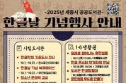 시민행정신문 강갑수 기자 | 세종특별자치시 공공도서관이 제579돌 한글날을 기념해 오는 10월 한 달간 한글의 소중함을 되새기고 한글을 즐겁게 체험할 수 있는 다양한 기념행사를 운영한다. 이번 행사는 세종시립도서관을 비롯한 생활권별 공공도서관 15곳에서 진행되며, 시민 누구나 참여할 수 있다. 시립도서관에서는 ▲한글학회 기증도서 전시 ▲한글날 기념 책추천(북큐레이션) ▲청소년 문해력 교실이 진행된다. 생활권별 도서관에서는 한글을 주제로 한 다양한 체험 프로그램이 준비되어 있다. 1·6생활권에서는 ▲모래로 피어나는 훈민정음(샌드아트) ▲한글 몬스터 작가와의 만남, 2생활권에서는 ▲가로세로 한글 맞추기, 3·4생활권에서는 ▲알쏭달쏭 한글 퀴즈 등을 운영한다. 프로그램 운영 일시와 개최 장소 등 자세한 사항은 시 통합도서관 누리집에서 확인하면 된다. 세종시립도서관 관계자는 “이번 행사를 통해 시민들이 한글의 소중함을 되새기고, 아이들은 한글을 즐겁게 배우고 체험하는 기회가 되길 바란다”며 “한글날을 기념해 마련된 이번 행사에 세종시민 여러분의 많은 관심과 참여를 바란다”고 말했다