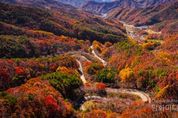 시민행정신문 강갑수 기자 | 충북 영동군의 대표 관광명소 도마령(刀馬岺)이 만추의 정취로 짙게 물들며, 가을의 절경을 즐기려는 관광객들의 발길이 이어지고 있다. 해발 840m의 도마령은 영동군 상촌면 고자리와 용화면 조동리를 잇는 국가지원지방도 49호선에 위치한 24 굽이 고갯길로, 남쪽으로 각호산과 민주지산, 북쪽으로 삼봉산과 천마산이 병풍처럼 둘러싸고 있다. 굽이마다 휘돌며 이어지는 길 위로 붉게 물든 숲이 드리워져, 한 폭의 수묵화처럼 운치를 자아낸다. 칼을 든 장수가 말을 타고 넘었다는 전설에서 이름이 유래된 도마령은, 계절마다 다른 표정을 가진 고개로 사시사철 관광객들에게 사랑받고 있다. 특히 지금은 붉은 단풍과 노란 은행잎이 어우러지며 늦가을의 절정을 장식하고 있다. 차량으로 오르내리며 굽이마다 달라지는 풍경을 감상하거나, 사진을 남기려는 이들의 카메라 셔터 소리가 끊이지 않는다. 지난해 문을 연 도마령 전망대는 올가을 단풍철을 맞아 다시금 주목받고 있다. 높이 14m, 너비 10.4m 규모로 조성된 이 전망대는 778.9㎡의 넓은 데크 공간을 갖춰