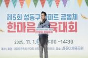 시민행정신문 이존영 기자 | 서울 성동구는 지난 11월 1일 살곶이체육공원에서 성동구 아파트 단지들이 한자리에 모여 ‘제5회 아파트공동체 한마음 체육대회’를 성황리에 개최했다. 올해로 5회째를 맞는 이번 체육대회는 성동구 아파트공동체 활성화단체 연합회(성아공 연합회)가 중심이 된 아파트공동체 한마음 체육대회 추진위원회 주관으로 진행됐으며, 성동구청과 각 아파트 공동체 활성화단체가 협력하여 원활한 행사 진행을 지원했다. 성동구가족센터, 옥수종합사회복지관 등 관내 복지시설에서는 다양한 체험부스 등을 운영했다. 체육대회는 관내 32개 아파트에서 약 650명의 입주민이 참여하여, 각기 다른 아파트 단지 주민들이 4개의 팀을 이뤄 협력과 경쟁을 즐기는 방식으로 진행됐다. 참가자들은 풍선 기둥 만들기, 한마음 공굴리기 등 가족과 이웃들이 함께 즐길 수 있는 스포츠 종목에 참여도 하고, 입주민 장기 자랑, 아이들을 위한 키즈존, 푸드트럭 등 다양한 볼거리, 먹을거리 등으로 즐거운 시간을 보냈다. 특히, 이번 체육대회는 단순히 스포츠를 즐기는 것을 넘어, 아파트 단지 내 주민들 간의 유대감을 깊게 만드는 기회가 됐다. 경기가