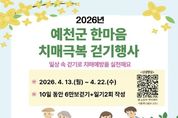 시민행정신문 기자 | 예천군은 오는 13일부터 22일까지 치매 예방에 효과적인 걷기 실천을 장려하고 지역 주민의 건강한 생활 습관 형성을 위해'2026년 한마음 치매극복 걷기 행사'를 비대면 방식으로 운영한다. ‘경상북도 한마음 치매극복 걷기 행사’의 일환으로 추진되는 이번 행사는 시간과 장소의 제약 없이 참여할 수 있도록 스마트폰을 활용한 비대면 걷기 챌린지 방식으로 운영해, 지역 주민의 자발적인 건강관리 참여를 유도하는 데 목적이 있다. 참여 대상은 치매 예방 관리가 필요해 모바일 치매예방 플랫폼 ‘인지케어 앱’을 설치한 60세 이상 주민이다. 챌린지는 앱을 통해 참여할 수 있으며, 10일간 총 6만 보 걷기와 일기 2회 작성을 목표로 일일 최대 1만 보까지 인정된다. 챌린지 성공 시 예천사랑상품권 1만 원권(지류)을 지급할 예정이며 달성자가 150명 이상일 경우, 추첨을 통해 지급된다. 특히 이번 행사는 올해 신규 치매예방사업인 ‘스마트 기억놀이터’와 연계해 운영되며, 걷기 활동과 인지 자극 활동을 병행함으로써 치매 예방 효과를 높일 방침이다. 임미란 보건소장은 “걷
