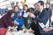 시민행정신문 강갑수 기자 | 김영록 전라남도지사는 설을 하루 앞둔 16일 여수 서시장과 순천 웃장을 방문해 지역 전통시장 이용 활성화와 민생경제 회복을 위한 현장 소통에 나섰다. 이번 현장 방문은 명절을 맞아 어려움을 겪고 있는 전통시장 상인들을 직접 격려하고, 도민과 함께하는 장보기 행사를 통해 지역 상권에 활력을 불어넣기 위해 마련됐다. 김영록 지사, 여수시와 순천시 부시장, 전남상인연합회장, 시장 상인회장 등 관계자들도 참석해 상인들의 애로사항을 청취하고 전통시장 활성화 방안에 대한 의견 청취와 건의사항을 수렴했다. 여수 서시장은 1932년에 개설된 역사 깊은 전통시장으로 240여 개 점포가 운영 중이며 수산물과 농산물을 중심으로 지역 대표 상권 역할을 해오고 있다. 순천 웃장도 1975년 개설된 상설시장으로 150여 개 점포와 노점이 운영되는 지역 대표 전통시장이다. 김영록 지사는 “설 명절을 맞아 도민들께서 전통시장을 많이 찾아주시는 것이 지역경제 회복의 가장 큰 힘”이라며 “앞으로도 시설 개선과 경영·안전 지원을 병행해 전통시장이 지역 공동체의 중심 공간으로 자리매김하도록 지