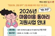 시민행정신문 강갑수 기자 | 대전 서구는 1인 가구의 사회적 고립을 예방하고 건강한 사회적 관계망 형성을 지원하기 위한 ‘마음이음 동아리 지원사업’ 참여자를 모집한다. 올해로 3년째 지속 운영되고 있는‘마음이음 동아리 지원사업’은 1인 가구의 정서적 고립 해소와 사회적 연결망 형성을 지원하기 위해 마련됐다. 특히 대전 서구는 1인 가구 비중이 전국에서 높은 지역으로, 다양한 연령층을 아우르는 사회적 관계망 형성 지원의 필요성이 크다. 해당 사업은 20대부터 80대까지 연령에 관계없이 참여할 수 있으며, 공통의 관심사를 바탕으로 이웃 간 교류를 확대하고 새로운 관계를 형성할 수 있도록 지원한다. 참여를 희망하는 이는 서구청 홈페이지 공지사항에서 세부 사항을 확인 후 신청서류를 구비하여 기간 내 신청할 수 있으며, 자세한 사항은 서구청 복지정책과 통합돌봄팀으로 문의하면 안내받을 수 있다.