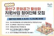 시민행정신문 강갑수 기자 | 광주 광산구가 지역 유휴 문화공간을 열린 시민 문화 거점으로 활용하는 ‘2026년 문화공간 공유 활성화 지원사업’을 추진한다. 사용이 활발하지 않은 공공‧민간 문화공간을 시민의 문화 체험 및 예술 프로그램 운영 장소로 개방해, 시민 간의 문화적 연대를 강화하고 일상 속 문화 향유 기회를 확대한다는 취지다. 문화공간은 창작 예술 활동, 시민을 위한 여러 프로그램 운영이 가능한 시설로, 공연장, 전시시설, 도서관, 다중 이용 창작공간 등이 대표적 예다. 광산구는 23일까지 사업에 동참할 단체를 모집한다. 광산구에 문화공간을 보유(운영)하고 있거나 사용 허가 등을 받아 지역사회와 공간을 공유할 의지가 있는 민간단체, 3인 이상 주민 모임이 신청할 수 있다. 선정된 단체는 시민 대상 무료 문화예술 프로그램을 기획‧운영해야 한다. 광산구는 유휴 문화공간이 시민의 일상 속 문화생활 거점이자 지역 예술인의 활동 무대로 활성화될 수 있도록 선정단체에 최대 500만 원까지 운영비를 지원한다. 참여를 희망하는 단체는 신청서와 사업계획서 등을 갖춰 광산