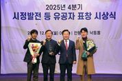 시민행정신문 강갑수 기자 | 경상북도는 29일 도청 동락관에서 개최한 ‘2025년 송년 직원 만남의 날’행사에서 창의성과 전문성을 바탕으로, 적극적으로 업무를 처리한 2025년 하반기 적극행정 우수공무원 4명을 시상하고 격려하는 자리를 가졌다. 이번에 선발된 적극행정 우수공무원은 도민 추천과 실·국에서 추천한 우수사례를 대상으로 담당자의 적극성, 창의성, 도정기여도 등을 종합적으로 평가해 ‘경상북도 적극행정지원위원회’의 심의를 거쳐 최종 결정됐다. 최종 선발된 우수공무원과 주요실적을 보면, AI데이터과 이근호 사무관(행정5)은 민간기업 참여 포기로 유찰된 정부 공모 사업을 민간 투자로 전환해 글로벌 ECO-AI 데이터센터(2조원, 600명 고용)를 유치해 지역 AI 산업의 핵심 거점을 확보했다. 이번 실적은 정부 공모 참여 실패를 지역 투자 기회로 바꾼 우수사례로 오픈AI 수요 기반의 AI데이터센터를 올해 12월 착공을 목표로 행정절차와 투자유치를 본격화하고 있다. 외국인공동체과 이한솔 주무관(행정6)은 경상북도가 최초 제안한 광역형비자 사업을 전격 시행했다. 광역형 비자는 지방정부가 필요한 인재를
