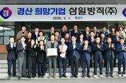 시민행정신문 이세훈 기자 | 경산시는 2026년 2분기 경산 희망기업으로 삼일방직(주)을 선정하고, 1일 시청 대회의실에서 경산 희망기업 선정식을 가져 트로피와 현판을 수여했다. 진량읍에 위치한 삼일방직(주)(대표 노희찬)은 45년 이상의 업력을 보유한 섬유 제조 강소기업으로 2010년 부설 연구소(PILOT 공장)를 설립하여 신제품개발과 공정개선에 집중하며 2013년 섬유업계 최초로‘월드클래스 300 프로젝트’에 선정되는 쾌거를 이루며 지역기업으로서 탄탄한 기반을 다져왔다. 특히, 2017년에는 미국 애틀란타 소재의 중견 방적 기업인 뷸러 퀄리티얀스(BQY)를 인수하는 전략적 선택과 단계적인 설비 투자로 현지화에 성공하며 미주와 유럽 시장에 진출하는 교두보를 마련했다. 또한, 사원들의 자기 계발 교육비 지원, 학자금 지원 제도, 근로복지 기금을 운영하며 근로자의 삶의 질 향상에도 최선을 다해왔다. 그로 인해 창립 이래 단 한 번의 노사분규도 발생하지 않았으며, 노(勞)와 사(使)가 상생 협력하는 선진적인 노사 문화 정착에 앞장섰다. 노희찬 대표는 “경산 희망기업으로 선정되어 지역기업으로서 책임감