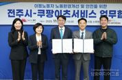 시민행정신문 이세훈 기자 | 전주시가 지역 배달종사자의 보호 체계를 강화하고 노동환경을 개선하기 위해 쿠팡이츠서비스와 손을 잡았다. 우범기 전주시장은 19일 전주시청에서 김명규 쿠팡이츠서비스 대표와 배달 이동노동자의 안전한 노동환경 조성과 안전 문화 확산을 위해 약속하는 업무협약을 체결했다. 이날 협약은 전주시에서 활동하는 약 2000여 명의 배달종사자가 보다 안전하고 쾌적한 환경에서 일할 수 있도록 지자체와 민간 기업이 함께 안전 지원체계를 강화하는 데 목적이 있다. 시는 쿠팡이츠서비스와 연계해 2024년~2025년에 걸쳐 이륜차 무상점검을 통해 200명의 배달종사자(1인당 10만 원 상당)에게 제동·조향장치·타이어 등 주요 장치 맞춤 점검 서비스를 추진한 바 있다. 앞으로 시는 이동종사자의 안전 확보를 위해 이륜차에 대한 무상점검을 지속·확대하고 안전교육 및 안전교육 캠페인을 반복해서 진행할 방침이다. 특히 이동노동자들이 잠시나마 더위와 추위를 피할 수 있는 안전쉼터 운영 및 확대 등 노동환경 개선을 위해 지속적으로 고민할 방침이다. 시는 이번 협약을 통해 기존 정책이 더 체계적이고