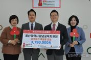 시민행정신문 기자 | 울산 강남교육지원청은 연말연시를 맞아 29일 울산사회복지공동모금회에 이웃사랑 나눔 성금 379만 원을 전달했다. 울산사회복지공동모금회에서 열린 전달식에는 임채덕 교육장을 비롯해 양호영 울산사회복지공동모금회 사무처장 등이 참석했다. 강남교육지원청은 해마다 희망 직원을 대상으로 매달 급여에서 ‘작은 사랑의 씨앗’으로 일정 금액을 공제해 성금을 모았다. 강남교육지원청은 2014년부터 사회복지단체에 기부하며 지역사회와 상생하는 나눔 문화를 실천하고 있다. 임채덕 교육장은 “연말을 맞아 직원들의 따뜻한 마음을 모아 지역사회에 온정을 전하고자 했다”라며 “앞으로도 교육공동체의 사회적 책임을 실천하며 지역사회와 함께 성장하는 나눔 활동을 이어가겠다”라고 말했다.