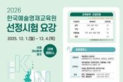 시민행정신문 강갑수 기자 | 광주광역시는 한국예술종합학교 부설기관인 한국예술영재교육원 광주캠퍼스의 2026년도 교육생을 오는 12월 1일부터 4일까지 모집한다고 13일 밝혔다. 한국예술영재교육원 광주캠퍼스는 수도권에 집중돼 있는 예술영재교육을 지역에서도 받을 수 있도록 지난 2021년 광주시와 한국예술종합학교, 국립아시아문화전당이 협약해 2023년 정식 개원한 호남권 예술영재 교육기관이다. 이번 모집에는 일반전형으로 ▲음악(기악·성악·작곡) 31명 ▲무용(발레) 15명 ▲전통예술(기악·성악·무용·연희) 19명 ▲융합(영상·멀티미디어) 10명 등 75명을 선발하며, 사회적배려 대상자 전형은 일반전형의 30% 이내에서 별도로 모집한다. 지원 자격은 광주·전남·전북지역에 주민등록을 둔 2008년 1월1일부터 2017년 12월31일까지 출생자(세부 전공별로 기준 다름)로, 재학 중인 학교(대안교육기관 포함)의 장이나 교사의 추천을 받아야 한다. 가정 내 학습자의 경우 지원 전공 분야 지도자의 추천서가 필요하다. 교육 기간은 2026년 3월부터 11월까지며, 교육비는 전액 무료로 지원된다. 자세