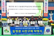 시민행정신문 강갑수 기자 | 여수시는 지난 12일 진남실내체육관에서 열린 ‘제22회 여수시 농업인학습단체 한마음대회’가 농업인 등 700여 명이 참석한 가운데 성황리에 마무리됐다고 밝혔다. 한국생활개선여수시연합회와 한국농촌지도자여수시연합회가 공동 주관한 이번 행사는 ‘AI 과학영농 시대, 여수농업이 선도한다’를 주제로 기후변화와 고령화에 대응하고 AI 기술을 활용한 지속 가능한 농업 실현의 뜻이 담겼다. 이날 행사에는 한국농촌지도자전라남도연합회와 한국생활개선전라남도연합회가 함께 참여해 총 4개 단체가 2,500만 원 규모의 2026여수세계섬박람회 입장권 구매 약정식을 진행하며 박람회 성공개최 염원에 뜻을 모았다. 또한 송미령 농림축산식품부 장관과 전라남도 생활개선회원들의 ‘섬박람회 성공개최 염원 엽서’가 전시돼 눈길을 끌었으며 참석자들이 직접 작성한 엽서 현장 평가 이벤트와 ‘섬박람회 OX 퀴즈’도 진행돼 축제 분위기 속에서 박람회 붐 조성에 기여하는 시간이 됐다. 행사장에는 회원들이 직접 재배한 농산물과 계절별 음식 작품, (사)아름다운 여수시귀농귀촌협회에서 생산한 우수농산물 전시·홍보 공간도 마