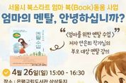 시민행정신문 강갑수 기자 | 서울 은평구는 오는 26일 부모의 마음을 돌보고 건강한 양육 방향을 제시하는 프로그램 ‘엄마의 멘탈, 안녕하십니까?’를 운영한다고 밝혔다. 이번 프로그램은 은평구립도서관이 서울시 북스타트 ‘엄마 북(Book)돋움’ 사업과 연계해 부모가 양육의 의미를 되짚어볼 수 있도록 마련됐다. 프로그램은 ▲완벽하지 않아도 괜찮은 부모 ▲기다림의 양육 ▲넘어져도 다시 일어서는 아이로 키우기 ▲나를 잃지 않는 육아 등으로 구성됐으며, 양육 과정에서의 불안을 완화하고 정서적 회복을 지원하는 내용으로 진행될 예정이다. 은평구립도서관 관계자는 “부모가 자신의 마음을 돌아보고 서로의 경험을 나누는 시간이 되길 바란다”며 “잠시 멈춰 서서 스스로를 돌보는 계기가 되기를 기대한다”고 말했다. 신청 대상은 영유아 및 초등 자녀를 둔 부모 20명이며, 4월 26일 은평구립도서관에서 약 90분간 진행된다. 접수는 4월 10일부터 은평구립도서관 누리집 ‘문화행사 신청’에서 가능하다.