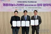 시민행정신문 강갑수 기자 | 영종구 출범 원년을 맞아 올해 새롭게 개관한 ‘영종하늘누리센터’의 안정적·체계적 운영을 위해 인천시 중구가 인천시 교육청, 운서중학교와 손을 맞잡았다. 김정헌 인천 중구청장과 도성훈 인천시 교육감, 김성오 운서중학교장은 10일 오후 영종하늘누리센터 하늘배움터에서 이러한 내용의 ‘인천운서중 학교복합시설(영종하늘누리센터)의 운영과 관리에 관한 업무 실시협약’에 서명했다. ‘영종하늘누리센터’는 인천 중구가 운서중학교 부지 내 일부를 무상으로 제공받아 하늘초롱길 69 일원에 지하 1층, 지상 4층 연면적 5,635㎡ 규모로 건립한 ‘학교복합시설’이다. 지난 2024년 6월 첫 삽을 떠 올해 1월 건립 공사를 모두 마쳤으며, 3월 준공식을 개최한 후 현재는 운영 본격화에 행정력을 집중하고 있다. 특히 다함께돌봄센터 7호점(거점형), 육아종합지원센터, 가족센터, 영종하늘누리 작은도서관이 지난 2월부터 입주해 다양한 복지·문화 서비스를 구민들에게 제공하고 있다. 이번 협약은 지난 2021년 영종하늘누리센터 건립을 위해 체결한 기본 업무협약의 내용을 한층 더 구체화함으로