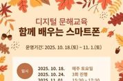 시민행정신문 기자 | 철원교육도서관은 지역 고령층의 디지털 활용 능력 향상과 격차 해소를 위해 오는 10월 18일부터 11월 1일까지 매주 토요일, 총 3회에 걸쳐 ‘함께 배우는 스마트폰’ 디지털 문해교육을 운영한다. 이번 강좌는 지역 내 60세 이상 주민을 대상으로 철원교육도서관 3교육실에서 매주 토요일 오후 3시 30분부터 5시 30분까지 진행된다. 주요 내용은 △스마트폰의 기본 조작 △사진 촬영 △앱 설치 등 실습 중심으로 구성되며, 일상생활 속 스마트폰 활용 능력을 높일 수 있도록 돕는다. 강좌는 10월 1일부터 15일까지 도서관 방문 또는 전화로 신청할 수 있으며, 선착순 10명을 모집한다. 김민서 관장은 “이번 강좌를 통해 어르신들이 디지털 사회에 적극 참여하고, 스마트 기기를 활용한 소통과 문화 활동으로 정서적 안정과 삶의 활력을 되찾길 기대한다.”라며 “어르신들의 자신감 회복과 사회적 고립 예방에도 도움이 될 것이다.”라고 말했다. 자세한 내용은 철원교육도서관 누리집을 참고하거나 철원교육도서관으로 문의하면 된다.