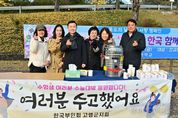 시민행정신문 강갑수 기자 | 한국부인회 고령지회(회장 박경숙)는 11월 13일 오전 7시부터 지역 수능 시험장인 대가야고등학교 정문에서 수험생과 학부모들을 위하여 따뜻한 음료과 간식 꾸러미를 전달하며 수험생 격려 응원 봉사를 펼쳤다. 이날 한국부인회 회원들은 이른 새벽부터 정성껏 준비한 음료와 간식 꾸러미를 수험생 한 명 한 명에게 응원 메시지와 함께 건네며 그동안의 노력이 좋은 결실로 이어지기를 기원했다. 박경숙 한국부인회 고령지회장은 “그동안 쌓아온 노력과 열정이 오늘 좋은 결실로 이어지길 바라며, 긴장하지 말고 평소 실력을 충분히 발휘하길 바란다.”고 격려의 말을 전했다. 고령군(군수 이남철)은 “이른 새벽부터 수험생들을 응원하기 위해 정성을 다해 봉사해주신 한국부인회 고령군지회 회원 여러분께 깊은 감사를 드리며, 지역의 학생들이 그동안 쏟은 노력과 열정이 오늘 좋은 결실로 이어지길 진심으로 바란다.”고 말했다. 한국부인회는 여성 지위의 향상과 사회참여의 확대, 자원봉사활동을 통하여 복지사회 실현을 목적으로 설립된 최초의 여성단체이며, 한국부인회 고령지회는 1978년 발족되어 복지시설 목욕봉사