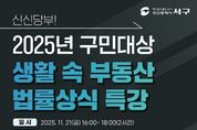 시민행정신문 이세훈 기자 | 부산 서구는 오는 21일 서구청 신관 4층 다목적홀에서‘신신당부! 2025년 구민대상 생활 속 부동산 법률상식 특강’을 개최한다고 밝혔다. 이번 특강은 임대차 계약 관련 정보와 필수 법률 상식을 제공해 전세사기 피해를 예방하기 위해 마련됐다. 강사는 법무법인 거산의 판사 출신인 신중권 변호사로 조직적 전세사기 범행(2019년‘화곡동 전세사기’사건)의 고소 대리를 전국 최초로 진행한 이력이 있으며, JTBC '손 없는 날', MBC '다수의 수다' 등 각종 방송에도 출연하여 전세사기 피해의 심각성과 예방법을 알린 바 있다. 신 변호사는 ▲전세사기 사례 및 대처 방법 ▲임대차 계약 시 주의사항 및 필수 특약사항 ▲생활 속 부동산 법률 상식 등 임대차 계약 시 알아야 할 정보를 전달할 계획이다. 특강은 오후 4시부터 서구청 신관 4층 다목적홀에서 무료로 진행되며, 관심 있는 구민 누구나 사전 신청 없이 참여 가능하다. 공한수 서구청장은 "전세사기 피해를 줄이기 위해서는 주민들도 올바른 임대차 계약과 부동산 법률 상식에 대한 정보를 숙지하는 것이 중요하기 때문에 이