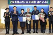 시민행정신문 강갑수 기자 | 전북특별자치도는 6일 도청에서 제13대 전북특별자치도 의용소방대 남·여 연합회장을 선출하고 임명장을 수여했다. 이번 선출로 전북특별자치도 의용소방대 남성연합회장에는 완주 민국열 대장이, 여성연합회장에는 정읍 김성순 대장이 각각 선출됐다. 연합회장은 전북특별자치도 의용소방대를 대표해 지역 의용소방대 간 협력과 연대를 강화하고 생활 속 안전문화 확산을 선도하는 역할을 수행하는 자리로, 전북 지역의 안전을 책임지는 핵심적인 책무를 맡게된다. 민국열 남성회장은 2016년 입대하여 2023년 의용소방대장, 2024년 완주 연합회장으로 활동하며 지역 내 화재 등 크고작은 재난대응과 봉사활동에 적극 참여해왔다. 특히 2024년 7월 기록적인 폭우로 피해를 입은 주민들이 하루빨리 일상으로 복귀할 수 있도록 생업을 뒤로한 채 복구활동에 전념하는 등 지역안전에 크게 기여한 바 있다. 또한, 김성순 여성회장은 2004년 입대 이후 20여 년 동안 화재와 풍수해 등 각종 재난 현장 최일선에서 시민의 생명과 재산을 지켜왔으며, 독거노인 돌봄과 취약계층 반찬나눔 등 이웃을 위한 따뜻한 봉사활동을