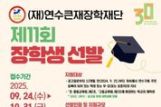 시민행정신문 강갑수 기자 | (재)연수큰재장학재단은 미래 지역사회를 이끌어 갈 우수 인재 발굴과 양성을 위해 제11회 장학생을 선발한다. 이번 장학생은 ▲복지, ▲특기(개인), ▲특기(단체), ▲연수꿈응원, ▲학업우수, ▲연수큰재(다년간) 등 총 6개 분야에서 지원자를 모집하며, 지원 규모는 약 1억 8천만 원에 달한다. 특히 올해는 장학생 지원 기준을 개선하고 추천권자를 조정하는 등 예년에 비해 보다 폭넓은 학생들에게 기회를 제공하는 방향으로 개편됐다. 선발 절차는 ▲공고 및 접수(9월 24일~10월 31일), ▲서류심사, ▲연수큰재(다년간) 면접 심사 및 선발 심의위원회 심의, ▲재단 이사회 최종 확정 순으로 진행된다. 선발 결과는 11월 말에 발표할 예정으로 자세한 사항은 연수구청 누리집 공고문을 통해 확인할 수 있다. 이재호 연수구청장은 “연수큰재장학재단은 미래 꿈나무들이 자신의 꿈을 마음껏 펼칠 수 있도록 지원하고 있다.”라며 “앞으로도 내실 있는 다양한 장학사업을 통해 교육 기회의 균등과 인재 양성에 최선을 다하겠다.”라고 말했다.