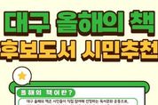 시민행정신문 강갑수 기자 | 대구광역시는 책 읽는 도시 조성을 위해 매년 ‘대구 올해의 책’ 10권을 선정·홍보하고 있다. 올해는 대구도서관 개관을 계기로 시민 참여를 더욱 확대하고자 시민추천단을 운영하여 시민 관심도와 참여도를 한층 높일 계획이다. 2026년 ‘대구 올해의 책’ 선정은 △도서추천단 후보도서 추천 △도서선정위원회 심의 △온라인 시민투표 및 최종 도서 선정의 방식을 거치게 된다. 도서추천단에는 분야별 독서 전문가, 구·군 및 교육청 대표사서, 시민, 지역출판협동조합 등 다양한 주체가 참여한다. 시민추천단은 대구도서관 누리집을 통해 대구시민이라면 누구나 참여 가능하며, 어린이·청소년·성인 분야별로 1권씩 총 3권까지 추천할 수 있다. 추천 대상 도서는 △국내 작가가 발간한 2년 이내 단행본 △사회적으로 공감할 수 있는 주제의 도서 △스테디셀러로 자리매김할 수 있는 도서여야 한다. 다만 종교·정치 성향 도서와 과거 ‘대구 올해의 책’ 선정 도서는 제외된다. 추천 기간은 2월 24일 오후 6시까지다. 시민추천단이 추천한 도서는 상위 30