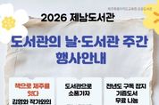 시민행정신문 기자 | 제주도교육청 제남도서관은 12일부터 도서관의 날과 도서관주간을 맞아 지역주민과 함께하는 다양한 독서문화 프로그램을 운영한다. 2026년 도서관의 날·도서관주간은 ‘도서관 속 작은 펼침, 세상을 여는 큰 열림’을 주제로 일상 속에서 책과 문화를 즐길 수 있도록 △도서관으로 소풍 가자! △전년도 잡지 및 기증도서 무료 나눔 △책으로 제주를 잇다 등 다양한 프로그램을 마련했다. ‘도서관으로 소풍 가자!’는 도서관 자료실에서 도서를 대출하면 돗자리, 비눗방울, 보드게임 등 야외 활동 용품이 담긴 소풍 가방을 함께 대출해 주는 서비스로 오는 7일부터 30일까지 운영된다. 단 정기휴관일인 월요일과 우천 시에는 운영하지 않는다. ‘전년도 잡지 및 기증도서 무료 나눔’은 도서관에서 보관 중인 전년도 구독 잡지와 이용자 기증 도서를 지역주민에게 무료로 제공하는 행사로 도서관 로비에서 진행될 예정이다. 또한 18일 오전 10시 도서관 한누리(교육실)에서는 ‘책으로 제주를 잇다-김영화 작가와의 만남’이 운영된다. 이번 강연에서는 김영화 작가가 제주 4·3의 현장을 직접 마주하며 이를