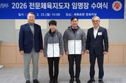 시민행정신문 장규호 기자 | 광주광역시체육회가 23일 15시 체육회관 중회의실에서 ‘2026 전문체육지도자 임명장 수여식’을 개최했다고 밝혔다. 수여식에는 전갑수 체육회장, 김영삼 사무처장, 전문체육지도자 등 관계자 50여명이 참석한 가운데 제107회 전국체육대회 등을 앞두고 훈련 지도에 전념하고 있는 지도자들을 임명하고 격려했다. 시 체육회는 육상, 복싱, 펜싱 등 27개 종목에 29명의 전문체육지도자들을 배치하여 지역 선수들의 경기력 향상과 체계적 선수 육성을 통한 지역 체육 경쟁력 강화를 도모한다. 모든 지도자는'국민체육진흥법'에 따른 전문체육지도자 자격을 갖춘 지도자로서 공공성과 전문성을 확보하여 선수 지도, 대회 참가 등 전문체육 전반을 담당한다. 이날 행사에서 지도자들은 올해 대표선수 경기력 향상 및 제107회 전국체전 상위 입상을 위해 최선을 다할 것을 다짐했다. 지난해 개최된 제106회 전국체전에서 광주선수단이 획득한 총 32,626점 가운데 시 체육회 소속 전문체육지도자들이 지도한 선수들이 6,824점을 획득하며 21%를 차지하는 성과를 거둔 바 있다. 시 체육회는 어려