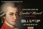 시민행정신문 이존영 기자 | 서울 용산구가 오는 16일 오후 7시 30분, 용산아트홀 대극장 미르(녹사평대로 150, 지하 2층)에서 클래식 공연 ‘에센셜(Essential) 모차르트’를 개최한다. 구민의 문화예술 향유 기회를 확대하고 지역 문화의 활력을 높이기 위해 마련한 자리다. 이번 공연은 서울문화재단 공연장 상주단체 육성지원 사업의 일환으로, 용산구와 용산문화재단(이사장 임형주), 트리니티이앤엠이 공동 주최‧주관한다. 무대는 2026년 모차르트 탄생 270주년을 기념해 그의 대표 작품들로 꾸렸다. 연주 프로그램에는 ▲작은별 변주곡 ▲교향곡 제41번 ‘주피터’ ▲오페라 ‘마술피리’ 중 밤의 여왕 아리아 ▲바이올린 협주곡 제5번 등이 포함됐다. 친숙한 선율과 화려한 기교, 웅장한 관현악(오케스트라) 음향이 어우러져 모차르트 음악의 폭넓은 매력을 전할 예정이다. 연주는 지휘자 정치용이 이끄는 ‘트리니티필하모닉오케스트라’가 선보인다. ▲바이올리니스트 강유경 ▲소프라노 이미영 ▲플루티스트 오아라가 협연자로 함께한다. 780여 석 규모 전 좌석 무료로 열리며 별도의 사전 신청 없이 선착순 입장으로 운영