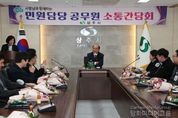 시민행정신문 강갑수 기자 | 상주시는 12월 24일 시청 소회의실에서 민원담당 공무원과의 소통 간담회를 개최했다. 이번 간담회는 연말 민원처리 마일리지 및 국민신문고 민원 처리 우수 공무원으로 선정된 직원 18명의 시상식이 함께 진행됐다. 민원처리 우수공무원 시상에는 민원처리 단축에 앞장선 민원처리 마일리지 우수공무원 12명, 국민신문고 민원처리 우수공무원 6명이 각각선정되어 축하를 받았다. 이어 진행된 소통 간담회에서는 민원 응대 과정에서 겪는 고충과 개선 의견을 자유롭게 공유하며 상호 소통하는 시간을 가졌으며, 민원 응대 현장에서 묵묵히 소임을 다하고 있는 민원담당공무원들의 노고를 격려했다. 강영석 상주시장은 “최근 악성 민원이 증가하는 등 어려운 여건속에서도 민원처리를 담당하는 직원들의 노고에 깊이 감사드린다. 앞으로도 직원들과의 소통을 통하여 민원서비스 질 향상을 위해 노력하겠다.”고 말했다. 상주시는 앞으로도 정기적인 소통 간담회 개최와 우수공무원 발굴을 통해, 시민이 만족하는 민원행정 서비스 제공에 앞장설 계획이다.