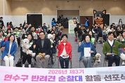 시민행정신문 강갑수 기자 | 연수구는 지난 21일 구청 대회의실에서 반려견순찰대 ‘연수지킴댕댕이’ 활동 선포식을 열고 3기 순찰대원을 공식 위촉했다. 2024년 연수구는 인천 기초자치단체 최초로 직영 반려견순찰대 운영을 시작했으며, 올해 3기를 추가로 모집해 서류 및 현장 심사를 거쳐 총 87팀을 위촉했다. 이날 행사는 위촉장 수여식 후, 민재연 수의사의 ‘안전한 순찰과 건강한 일상생활을 위한 반려견 운동 가이드’ 강좌와 반려견순찰대 기본 사항 및 순찰 방법에 대한 교육이 진행됐다. ‘연수지킴댕댕이’는 반려견과 함께하는 일상적인 산책을 통해 우리 동네 구석구석을 살피며 생활 불편 사항을 점검하고 펫티켓을 홍보한다. 순찰대는 야간 시간대 범죄취약지역을 중심으로 합동 순찰을 하고, 관내 공원에서 ‘펫티켓 홍보 캠페인’ 등을 추진할 계획이며, 구는 연말 순찰대 활동 사례 발표를 통해 우수 순찰대원을 표창할 예정이다. 반려견순찰대는 지난해 4월부터 9개월간 총 5,640회 순찰했으며, ▲112 신고 13건, ▲안전신문고 신고 130건 등 총 143건의 신고를 접수했다. 이재호 구청