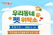 시민행정신문 강갑수 기자 | 서울 용산구가 경제적 어려움이나 입원 등으로 장기간 집을 비워야 하는 상황에서 반려동물을 돌보지 못하는 취약계층의 부담을 덜기 위해 ‘2026 우리동네 펫 위탁소’ 사업을 추진한다. 취약계층은 반려동물 돌봄 공백이 유기나 방치로 이어질 가능성이 높다는 점에서, 안전한 보호 체계를 구축하고 반려동물과 보호자가 함께 안정적인 생활을 이어갈 수 있도록 지원한다는 방침이다. 이번 사업은 올해 12월까지 운영하며, 지역 내 주민등록을 둔 취약계층을 대상으로 한다. 지원 대상은 ▲기초생활수급자 ▲차상위계층 ▲한부모가족 ▲범죄피해자 ▲1인가구 등이며, 동물등록이 완료된 반려동물에 대해 위탁보호 비용을 지원한다. 지원 기간은 최대 10일이며, 1인가구는 소득 기준과 관계없이 반기별 5일까지 이용할 수 있다. 지원 금액은 반려동물의 무게와 종에 따라 차등 적용한다. 반려견의 경우 ▲4kg 미만, 1일 3만 원 ▲4kg 이상 20kg 미만, 4만 원 ▲20kg 이상, 5만 원이며, 반려묘는 무게와 관계없이 1일 5만 원을 지원한다. 지원 기준을 초과하는 기간에 대해서는 보호자가 비용을 부담한다. &n