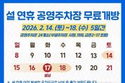 시민행정신문 강갑수 기자 | 파주도시관광공사는 12일, 2026년 설 명절을 맞아 시민과 고향을 방문하는 귀성객의 교통편의를 위해 공영주차장 24곳(부설주차장 시청, 의회, 금촌2-17 포함)을 오는 14일(토)부터 18일(수)까지 5일간 무료로 개방한다고 밝혔다. 설 연휴기간 동안 시민들이 안전하고 쾌적하게 주차장을 이용할 수 있도록 사전점검을 마쳤고 효율적인 인력 배치와, 비상연락 체계 유지를 통해 이용 불편을 최소화할 계획이다. 공사 조동칠 사장은 “시민들과 방문객의 주차 불편을 최소화하고, 안전한 시설관리를 통해 편안한 명절 연휴가 될 수 있도록 최선의 노력을 다하겠다”라고 말했다.