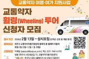 시민행정신문 강갑수 기자 | 파주시 교통약자이동지원센터는 교통약자의 이동권 확대와 여가 활동 증진을 위해 '교통약자 휠링(Wheeling) 투어 지원사업'을 3월부터 본격 운영한다고 밝혔다. “휠링(Wheeling)투어”는 휠체어(Wheel)와 힐링(Healing)의 의미를 결합한 무장애여행 지원사업으로 센터 등록 휠체어 이용자들이 가족과 함께 수도권(서울, 경기, 인천)의 주요 관광지와 문화·예술 공간을 안전하고 편리하게 방문할 수 있도록 돕는 여행·여가 지원사업이다. 신청접수는 2월 13일(금)부터 모집인원 마감까지 선착순 모집하며, 인원은 3월부터 12월까지 매월 2팀씩 총 20팀을 선정해 운영하고, 이용 형태는 ▲A형(주말 당일치기)과 ▲B형(Pick-drop/ 주말 1박2일)으로 출발지에서부터 왕복 이동을 지원한다. 신청방법은 공사 홈페이지 교통약자이동지원 등록·현황 페이지에 첨부된 신청서 양식을 다운받아 작성하여 센터방문 또는 이메일, 팩스접수로 진행한다. 공사 조동칠 사장은 “휠링투어를 통해 교통약자가 일상에서 여행과 여가를 자연스럽게 누릴 수 있기를 기대한다”며, “앞으로도 맞춤형 이