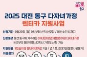 시민행정신문 강갑수 기자 | 대전 동구는 다자녀 가정의 여가활동 지원과 아이 키우기 좋은 환경 조성을 위해 ‘2025년 다자녀 가정 렌터카 지원사업’을 본격 추진, 이달 29일부터 참여자를 모집한다고 밝혔다. 이번 사업은 총 2천만 원의 고향사랑기금으로 추진되며, 신청 대상은 대전 동구에 주소를 둔 3자녀 이상 가정(자녀 중 1명 이상이 미성년인 경우)이다. 단, 2자녀 가정이라도 조부모와 함께 여행 후 증빙사진을 제출할 수 있는 경우 신청이 가능하다. 지원 범위는 9인승 이상 렌터카 대여료이며, 유류비와 하이패스 요금 등 부대 비용은 본인 부담이다. 차량 이용 기간은 오는 10월 1일부터 12월 15일까지이며, 가구당 최대 3일간 이용할 수 있다. 선정된 가정은 쏘카 앱 전용 계정을 통해 우선 결제 후 차량을 이용하고, 청구서와 통장사본 등 증빙자료를 제출하면 익월 10일 이내 이용료를 환급받을 수 있다. 구는 사업 추진에 앞서 지난 22일 국내 모빌리티 플랫폼 ㈜쏘카와 협약을 체결하고, 다자녀 가정이 평일 60%, 주말 50% 할인된 요금으로 카셰어링을 이용할 수 있도록
