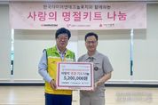 시민행정신문 강갑수 기자 | 대전 대덕구는 23일 한국타이어앤테크놀로지 대전공장 임직원이 추석을 앞두고 지역 어려운 이웃을 위해 ‘사랑의 명절키트 나눔’을 진행했다고 밝혔다. 이번 나눔은 한국타이어앤테크놀로지가 대덕구자원봉사센터에 지정 기탁한 성금으로 마련됐으며, 송편과 사과·배, 약과, 식혜 등으로 구성된 키트 50세트를 지역 취약계층 가정에 전달했다. 이준길 한국타이어앤테크놀로지 대전공장장은 “지역 주민들과 명절의 기쁨을 나눌 수 있어 뜻깊다”며 “앞으로도 지역과 함께 성장하는 기업으로 사회공헌 활동을 꾸준히 이어가겠다”고 말했다. 박재용 대덕구자원봉사센터 이사장은 “한국타이어앤테크놀로지 대전공장 임직원분들의 따뜻한 손길 덕분에 더 많은 분이 풍성한 한가위를 보낼 수 있게 됐다”고 감사의 뜻을 전했다. 한편, 한국타이어는 ‘한가족 봉사단’ 운영을 비롯해 복지시설 일손 돕기, 벽화 그리기, 어르신 주거환경 개선(LED 전등 교체, 도배, 장판), 화재 예방 활동 등 생활 밀착형 사회 공헌을 지속 전개하고 있다.