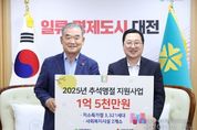 시민행정신문 강갑수 기자 | 대전시는 9월 22일 시청에서 대전사회복지공동모금회로부터 추석 명절을 맞아 저소득가정을 돕기 위한 성금 1억 5천만 원을 기탁받았다. 이날 행사에는 유재욱 대전사회복지공동모금회 회장이 참석해 이장우 대전시장에게 성금을 전달했다. 시는 기탁금 중 1억3,500만 원을 저소득 3,321가구에 현금으로 지원하고, 나머지 1,500만 원은 쪽방상담소와 이주외국인종합복지관의 명절맞이 행사에 사용할 계획이다. 이장우 대전시장은 “어려운 이웃이 소외되지 않고 모두가 따뜻한 추석 명절을 보낼 수 있도록 마음을 모아주신 데 깊이 감사드린다”라며 “시민 모두가 행복한 일류 경제도시 대전을 만들기 위해 앞으로도 민관이 함께 협력해 나가겠다”라고 말했다.