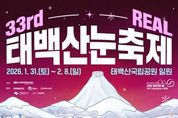 시민행정신문 기자 | (재)태백시문화재단은 제33회 태백산 눈축제의 공식 포스터를 공개하고 본격적인 홍보에 나섰다고 밝혔다. 제33회 태백산 눈축제는 오는 2026년 1월 31일부터 2월 8일까지 태백산국립공원 일원에서 열릴 예정으로, 이번 축제는 ‘2026 RE⧗AL 태백산 눈축제’를 슬로건으로 시민과 관광객이 함께 참여하는 체류형 겨울축제로 운영된다. 공개된 공식 포스터는 ‘33rd REAL 태백산 눈축제’를 메인 타이틀로, 이번 축제의 주제인 ‘REAL’을 직관적으로 배치해 축제의 방향성과 정체성을 명확히 전달한다. ‘REAL’은 △항상 기억에 남는 축제(REMEMBER ALWAYS) △시민과 함께 소통하는 축제(REPLY ALWAYS) △휴식이 공존하는 축제(RELAX ALWAYS)를 의미한다. 포스터는 와인 컬러 톤을 바탕으로 한 겨울 산세와 조명 연출을 통해 눈축제 특유의 따뜻하고 안정적인 분위기를 표현했으며, 천제단과 태백시 마스코트 ‘태붐이’, 겨울 체험 장면 등을 배치해 태백만의 지역성과 가족 친화적 이미지를 함께 담아냈다. 문화재단은 축제의 인지도와 친근감을 높이기 위해 올해 처