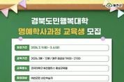 시민행정신문 강갑수 기자 | 예천군은 군민 누구나 배움을 통해 성장하는 ‘평생학습도시 예천’ 구현을 위해 오는 3월 6일까지 ‘2026년 경북도민행복대학 예천캠퍼스 명예 학사 과정’ 새내기 교육생을 모집한다. 2021년도부터 시작해 올해 6기를 맞는 경북도민행복대학은 체계적이고 수준 높은 학습을 통한 주민의식 함양과 지역민의 역량 개발을 통한 지역 경쟁력 제고를 위해, 경상북도와 예천군, 국립경국대학교 예천캠퍼스가 추진하는 관‧학 협력 평생학습 사업이다. 이번 교육과정은 명예학사 60+마스터 과정으로 운영되며, 경북학, 시민학, 미래학 등 공통교육과 인문·사회경제·생활환경·문화예술 분야의 특화교육을 포함한 총 7개 영역으로 구성된다. 또한, 학습동아리와 학생자치활동, 지역사회 참여 프로그램 등 다양한 비교과 활동을 함께 마련해 학습 효과와 공동체 참여를 높일 계획이다. 교육은 상반기 3월 17일부터 6월 30일까지, 하반기 8월 25일부터 12월 1일까지 각각 15주씩 운영되며, 매주 화요일 저녁 7시에 진행된다. 수료자에게는 명예 도민 학사 학위가 수여되며, 우수 학습자에게는 별도의