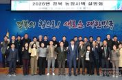 시민행정신문 이세훈 기자 | 경상북도는 2월 11일 도청 화백당에서 시‧군 농정 부서장과 유관 기관 관계자 등 150여 명이 참석한 가운데 2026년 농정시책 설명회를 개최했다. 이번 회의에서는 2026년 경북 농정방향과 5대 중점 추진전략을 공유하고, 경북형 공동영농의 시군 연계 강화 방안과 국비 공모사업 대응 전략 등 주요 현안을 심도 있게 논의했으며, 시‧군의 다양한 의견을 청취하는 시간도 가졌다. 2026년 경북농정은‘농업소득 두 배로! 경북 농업대전환 확산 가속’을 목표로 ▲든든한 농업, 새로운 기회가 되는 농촌으로 대전환 ▲K-푸드 선도, 글로벌 농식품산업 구현 ▲농업생산시스템 혁신, 미래 신성장 동력 창출 ▲가축개량 및 스마트 기술로 미래 선진 축산 구현 ▲차단방역으로 건강한 가축, 안전한 축산물 공급 등 5대 중점 전략을 중심으로 추진해 나갈 계획이다. 특히, 도는 농식품부 국정과제로 채택된 경북형 공동영농의 도약을 위해 올해부터는‘선 교육 후 지원’체계를 본격 도입하고, 단계별 지원체계를 정립해 나가기로 했다. 마을 및 들녘 단위의 공동체 중심으로 역량 강화 교육을 추진할 방침이다.
