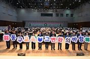 시민행정신문 강갑수 기자 | 대구 동구청은 지난 17일, 대구텍스타일콤플렉스(DTC) 다목적홀에서 학부모, 학생, 교육관계자 등 200여 명이 참여한 가운데 ‘동구 교육 성과공유회’를 성황리에 개최했다. 이날 행사는 지난 3년 동안 추진된 교육사업 성과를 돌아보고, 지역 교육발전에 기여한 교육관계자들의 노고를 격려하는 등 지역 교육의 공동 발전을 도모하기 위해 마련됐다. 율금초 ‘율금빛소리합창단’의 식전공연과 동구 교육성과를 담은 홍보영상 상영으로 성과공유회는 시작됐으며, 이어 교육발전에 기여한 교사 5명에게 유공자 표창을 수여했다. 2부에서는 ‘교육혁신으로 여기 동구의 미래지도’를 주제로 김동기 동구진로진학지원센터장의 특강과 동구교육재단과 초·중·고등학교의 우수사례 발표를 통해 동구 교육지원 사업의 다양한 성과를 공유했다. 또한 ‘동구교육에 바란다’ 메시지 작성 부대행사에서는 지역 교육에 대한 폭넓은 의견과 희망을 나눴다. 윤석준 동구청장은 “지난 3년 동안 동구는 학생 중심 맞춤형 교육지원을 통해 많은 성과를 거두었다”며 “오늘 성과공유회가 동구 교육의 긍정적 변화를 공유하는 소중한 시간이 됐길
