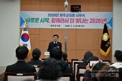 시민행정신문 강갑수 기자 | 전북특별자치도가 2일 도청 공연장에서 '붉은 말의 해' 2026년 병오년(丙午年) 시무식을 열고 새해 공식 업무를 시작했다. 이날 시무식은 군경묘지 참배로 문을 열었다. 본행사는 개회식과 국민의례에 이어 대북 타고식 퍼포먼스, 대통령 기관 표창 전수식, 신년사, 새해 청원 각오와 희망 낭독, 전북 대도약 2026 비전 퍼포먼스 순으로 이어졌다. 이날 행사에서는 대통령 기관 표창 2점에 대한 전수식도 함께 진행됐다. 도 안전정책과는 2025 을지연습에서 탁월한 위기대응 역량과 민·관·군·경·소방 협업 성과를 인정받아 '국가 비상대비태세 확립 우수 기관'으로 선정돼 지난달 30일 대통령 표창을 받았다. 도 사회복지정책과 역시 정부 보육정책 확산과 특수시책 추진 기여 공로로 대통령 기관 표창을 수상했다. 특히 전북형 무상보육 도입과 돌봄 공백 해소를 위한 맞춤형 보육 정책을 선도적으로 추진해 전국 보육 정책 발전에 모범이 된 점이 높은 평가를 받았다. 대북 타고식 퍼포먼스에서는 피지컬 AI와 전주 하계올림픽 도전 등 전북의 핵심 정책 방향을 상징적으로 담아내며 새해 도정 비전