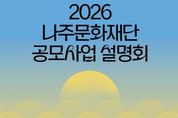 시민행정신문 강갑수 기자 | 나주문화재단이 2026년도에 추진할 문화사업 전반을 시민과 공유하고 공모 참여 기회를 확대하기 위해 설명회를 개최한다. 나주문화재단은 오는 2월 24일 나빌레라문화센터 소극장에서 ‘2026년 나주문화재단 통합 공모사업설명회’를 연다고 13일 밝혔다. 이번 설명회는 지역민과 예술인을 대상으로 재단의 연중 사업을 종합적으로 안내하고 공모사업 참여를 독려하기 위해 마련했다. 재단은 2026년 추진 예정 사업 전반과 함께 총 5건의 공모사업 개요, 신청 방법, 서식 작성 요령 등을 상세히 설명할 계획이다. 설명 대상 사업은 나주형 커뮤니티 발굴사업 ‘취향살롱’, 지역문화 활성화 지원사업, 나빌레라문화센터 전시공간 지원 공모, 나빌레라문화센터 창작실 입주작가 공모, 미디어 콘텐츠 촬영 장소 지원 등 5건이다. 설명회에서는 사업 안내와 더불어 현장 질의응답 시간을 운영해 시민과 예술인의 이해도를 높이고 다양한 의견을 수렴할 예정이다. 이를 통해 재단과 지역 문화 주체 간 소통을 강화하고 정책 반영의 기반을 마련한다는 방침이다. 특히 직장인 등