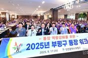 시민행정신문 강갑수 기자 | 부평구는 지난 17일 지역 내 라페니체 웨딩홀에서 통장 229명이 참석한 가운데 ‘2025년 통장 역량강화 워크숍’을 진행했다. 이번 워크숍은 행정의 최일선에서 일하는 통장의 역량을 강화하고, 소통의 기회를 늘리고자 마련됐다. 통장들은 이날 각 동의 리더로서의 역할을 강조한 특강 ‘지역리더의 리더십과 공감하는 소통’을 듣고, 이와 관련해 서로 이야기하는 시간을 가졌다. 박영택 통장연합회장은 “이번 워크숍을 통해 친목과 화합을 다질 수 있었다”며 “주민을 위한 봉사자로서 책임을 다짐했다”고 밝혔다. 차준택 구청장은 “어렵고 힘든 일에도 솔선수범하며 노력하시는 통장님들께 항상 감사한 마음”이라며 “이번 워크숍을 소통과 화합의 기회로 삼아 지역 발전의 든든한 동반자가 돼 주시기를 바란다”고 말했다.