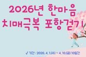 시민행정신문 기자 | 포항시 북구보건소는 시민들의 치매예방 실천과 치매에 대한 인식 개선을 위해 ‘2026년 한마음 치매극복 포항 걷기 행사’를 개최한다. 이번 행사는 ‘함께하는 힘찬 걸음, 함께 만드는 치매극복’이라는 슬로건 아래 내달 1일부터 10일까지 열흘간 진행한다. 모바일 걷기 앱 ‘워크온’과 연계해 진행되며, 기간 내 총 8만 보 걷기를 목표로 한다. 시민들이 일상 속 걷기를 통해 자연스럽게 치매 예방 활동에 참여하고, 모든 세대가 치매에 대한 관심과 공감대를 형성하는 계기가 될 것으로 기대한다. 포항 시민이라면 누구나 참여 가능하며, 참여 방법은 스마트폰에 워크온 앱을 설치한 후 ‘한마음 치매극복 포항걷기 행사’ 챌린지에 접속해 ‘참여하기’를 선택하면 된다. 기간 종료 후 목표 걸음 달성자는 챌린지 안내에 있는 ‘응모하기’를 신청하면 추첨을 통해 100명에게 기념품을 제공할 예정이다. 김숙향 건강관리과장은 “걷기 생활화로 치매를 예방하고자 하는 이 행사에 모바일 플랫폼을 활용해 다양한 연령층의 참여를 유도하겠다”며, “앞으로도 초고령사회에 대비한 치매 친화적 환경 조