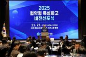 시민행정신문 기자 | 대전시교육청은 11월 21일 대전 롯데시티호텔 크리스탈 볼룸에서 협약형 특성화고 컨소시엄의 공동 비전을 확립하고 지역 산업 인재 양성을 위한 협력을 강화하기 위해 '2025년 협약형 특성화고 비전 선포식'을 개최했다고 밝혔다. 비전선포식에는 대전시교육청, 대전시, 대전시의회, 교육부 관계자를 비롯하여 교육부 지정 및 대전형 협약형 특성화고 6개교의 컨소시엄(기업-대학-유관기관) 관계자 등 150여명이 참여했다. 참석자들은 협약형 특성화고의 공동 비전을 공식적으로 선언하며 지역 기반 미래인재 양성을 위한 협력을 다졌다. 1부에서는 협약형 특성화고의 비전선포 세레머니와 컨소시엄별 촬영을 통해 운영 의지와 교육·산업·지자체 간 연계 강화를 상징적으로 드러냈다. 2부에서는 협약형 특성화고 6개 학교가 각 육성 분야의 비전과 추진계획을 발표하고, 교육청의 지원 및 성과관리 방향이 공유되는 등 실질적 논의가 이루어졌다 협약형 특성화고는 '지자체–교육청–산업체–유관기관–특성화고'가 협약을 맺어 지역 산업에 필요한 인재를 기르는 고교체제로, 대전지역에서는 지역 전략산업과 연계해 교육부 지정 협약형 특성