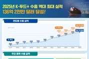 시민행정신문 김학영 기자 | 농림축산식품부는 2025년 케이-푸드 플러스(K-푸드+) 수출액(잠정)이 지난해보다 5.1% 증가한 136.2억 달러로 역대 최고 실적을 경신했다고 밝혔다. 세부적으로는 농식품 104.1억 달러, 농산업 32.2억 달러이며, 두 분야 모두 집계 이래 최대 실적이다. 【 농식품 분야 】 농식품은 2015년 이후 10년 연속 증가세를 유지한 것은 물론, 전년 대비 4.3% 증가로 최대 실적을 경신하며 사상 처음으로 100억 달러를 돌파했다. 라면이 단일 품목으로는 처음으로 15억 달러를 넘어섰고, 그 외에도 11개 품목이 역대 최고 수출액을 기록했다. 《품목별》라면, 소스류, 아이스크림 등의 가공식품과 포도, 딸기 등의 신선식품이 역대 최대 수출액을 기록했다. 라면은 전년 대비 21.9% 증가하면서 역대 최대 규모인 15.2억 달러 수출 실적을 기록했다. 글로벌 수요 증가에 발맞추어 생산을 확대하고 안정적인 공급망을 구축한 것이 주요 요인으로 작용했다. 치즈맛 매운 라면 등의 신제품이 호응을 얻었고, 중국, 미국 등 기존 주력 시장은 물론 중앙아시아(CIS), 중동(GC