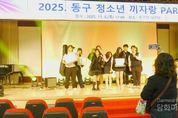 시민행정신문 강갑수 기자 | 부산 동구는 지난 6일 동구청 로비층 대강당에서 청소년 장기자랑 행사인 ‘2025. 동구 청소년 끼자랑 파티’를 성황리에 개최했다. 작년에 이어 올해도 열린 이번 행사는 자라나는 청소년들에게 재능을 뽐내고 특별한 추억으로 남을 무대를 마련하기 위해 추진됐다. 행사는 롯데 자이언츠 치어리더들의 격려공연으로 시작됐으며 관객들의 열렬한 환호 속에 분위기는 한껏 달아올랐다. 치어리더들의 응원에 힘입어 청소년들은 자신감 있게 무대에 올라 팀별 댄스, 노래, 밴드 등 열정적인 공연을 펼쳤다. 부산중, 경남여고, 경남여중, 부산국제영화고, 선화여중, 5개 학교에서 모인 12팀 63명의 청소년들은 이날 가지고 있는 끼를 마음껏 뽐내며 무대의 주인공이 됐다. 또 장기자랑을 구경하러 온 청소년들은 친구들을 응원하기 위해 응원봉이 날아갈 기세로 흔들었다. 이날 행사는 청소년들과 주민들이 함께 어울려 즐기고 응원하는 파티 같은 분위기로 막을 내렸다. 행사 만족도 설문에서 청소년들은 “너무 재밌었다. 또 하면 좋겠다”, “정말 행복한 시간이었다” 등 긍정적