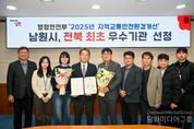 시민행정신문 강갑수 기자 | 남원시가 행정안전부 주관 ‘2025년 지역교통안전환경개선’ 평가에서 전국 우수 지자체로 선정되어 행정안전부 장관 표창을 수상했다. 이번 평가는 행정안전부가 전국 지자체를 대상으로 교통안전 인프라 개선 실적과 사고 예방을 위한 정책적 노력 등을 종합적으로 심사하여 진행됐다. 남원시는 지역교통안전환경개선 분야에서 전북특별자치도 내 시·군 중 최초 장관 표창 대상 기관으로 선정되며 도로 행정의 우수성을 입증했다. 남원시는 그간 ‘튼튼한 내일, 견고한 오늘’이라는 슬로건 아래 시민의 안전과 편익을 최우선으로 하는 다양한 도로 교통 환경 개선 사업을 추진해 왔다. 특히 송동교 앞 외 3개소 회전교차로 설치를 통해 교통사고를 방지하는 실질적인 성과를 거두었으며, 춘향교 삼거리 등 사고가 잦은 곳에 대한 선제적 시설 정비로 교통안전 증진에 기여해 높은 평가를 받았다. 또한 선제적인 보행환경개선지구 지정·고시(23.1.13.)를 통해 옥샘길, 동부시장길 등 14개소에 보행자우선도로 조성을 완료했다. 이와 더불어 운봉초·중학교 등 5개 구역에 그린뉴딜 지중화사업